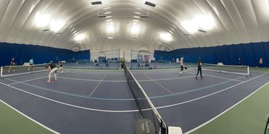Located just minutes away with the nicest hard courts in the area that are protected from the winter elements under a seasonal dome. Lighting is next-generation LED technology that provide phenomenal illumination across the four courts. The West courts are the only courts in the area that are painted in the style of the Miami and Dubai open using the purple/green color scheme that offer the best visual contrast to the human eye. The paint was more expensive than the common options, but it was worth it.